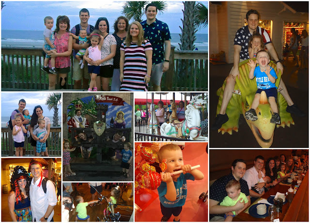 To kick off this blog-cation, here are a couple picture of my family and I on our recent vacation to Myrtle Beach, SC. This is the first time my little ones have been to a beach and boy did they have fun! My mom, my sister, my brother and my mother-in-law joined us on our vacation. Our vacation consisted of plenty of beach time, visiting Broadway at the Beach, the Boardwalk and putt-putt golf. We attempted to go crab hunting but didn't have any luck although we caught some fish and a creature that reminded me of a sand mouse. While in Myrtle Beach we saw a huge sea creature - maybe a manatee?, a baby shark just off the shore, several baby fish, and we even came across some coral full of baby sea crabs. A few of the restaurants we ate at included The American Tap House, Sweet Carolina's BBQ, Landshark Bar & Grill and Fuddruckers. We also enjoyed a lovely dinner show at the Pirates Voyage. There are tons of things to do at Myrtle Beach and as you can tell by the pictures, we enjoyed ourselves! Until next time, Happy BLOG-CATION 2017.